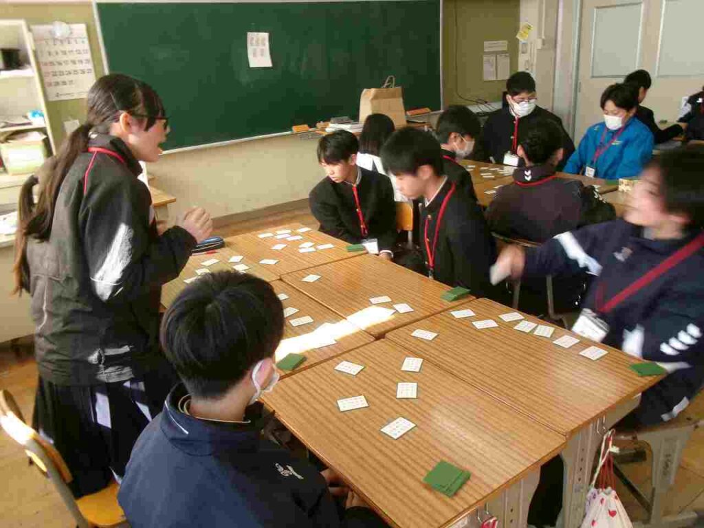授業では百人一首を題材にした漫画「ちはやふる」の話をしました。「正々堂々とやって負けてかっこ悪いことあるかー!」という言葉が漫画の中に出てきます。勉強や部活動、その他さまざまな場面で、何事にも一生懸命に取り組み、勝ったら嬉しい、負けたら悔しい、そんな空気を作れる学年であってほしいなと願っています。