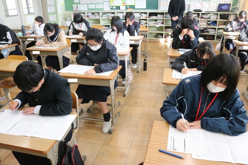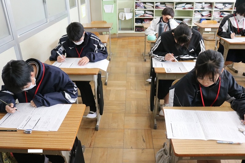 B組は、国語の授業でした。一生懸命課題テストを解いていました。これまでの学習がどの程度身についているかしっかり確認し、今年度中に復習しよう。