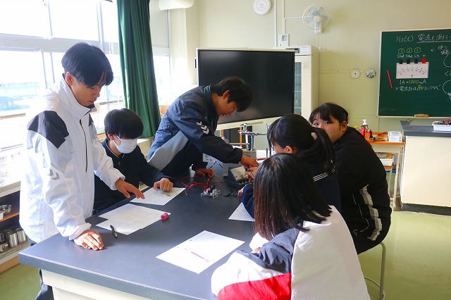 A組は理科の授業でした。電源装置の使い方、回路のつくり方の復習をしました。B組は技術の授業でした。センサーの役割について学びました。C組は社会の授業でした。日露戦争前後の外交について学びました。