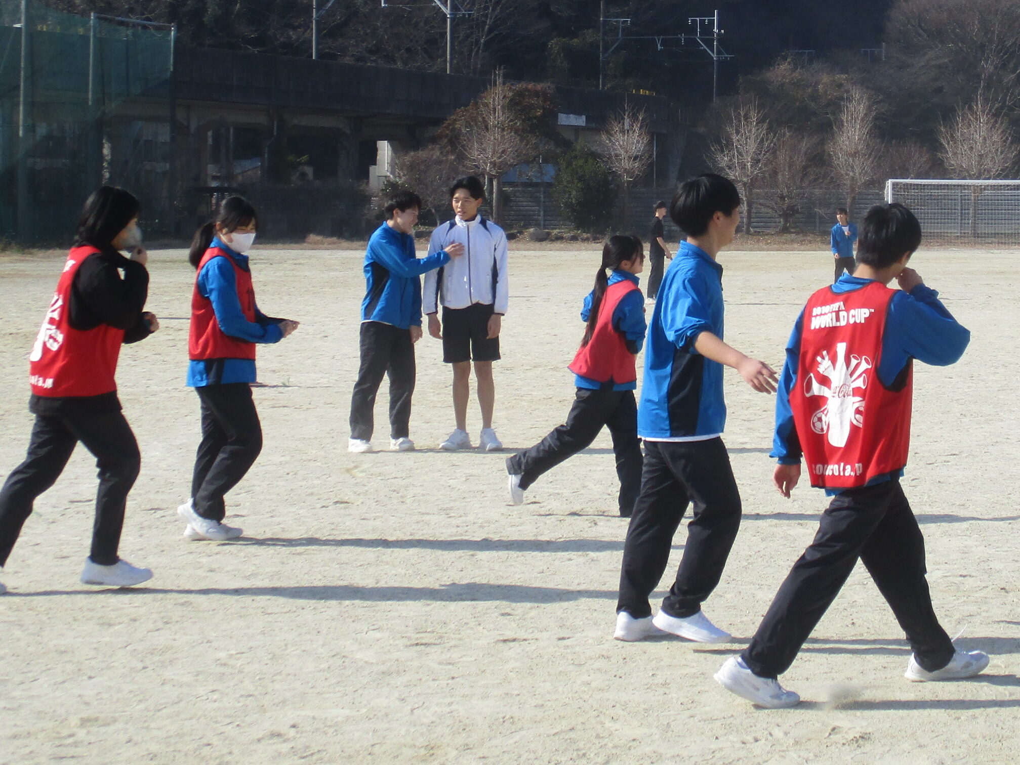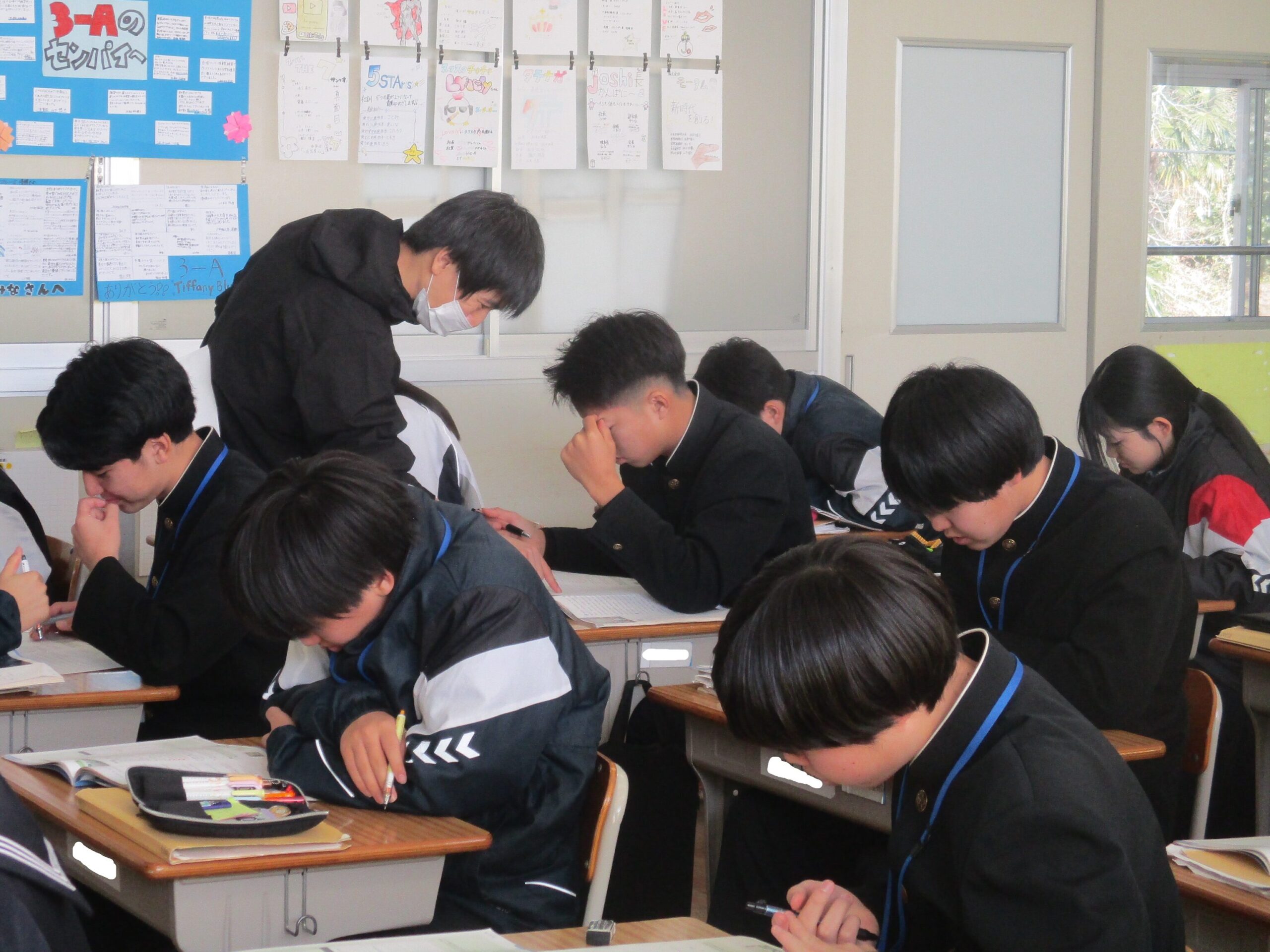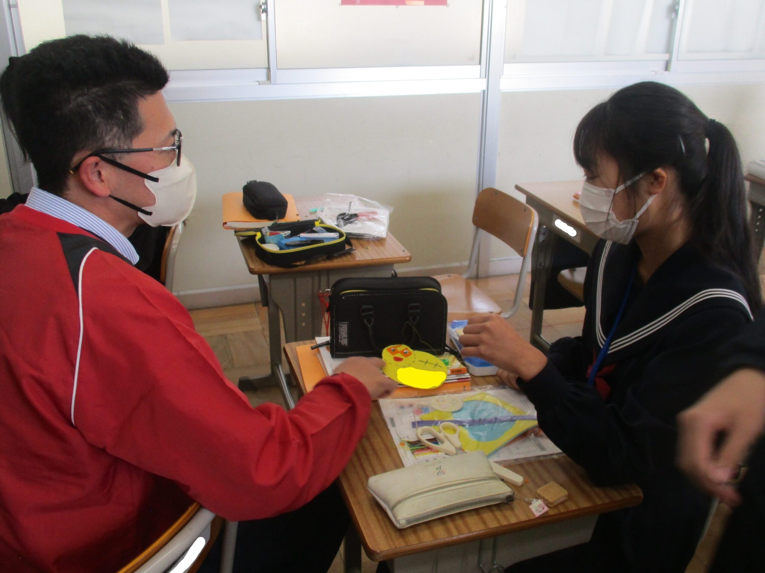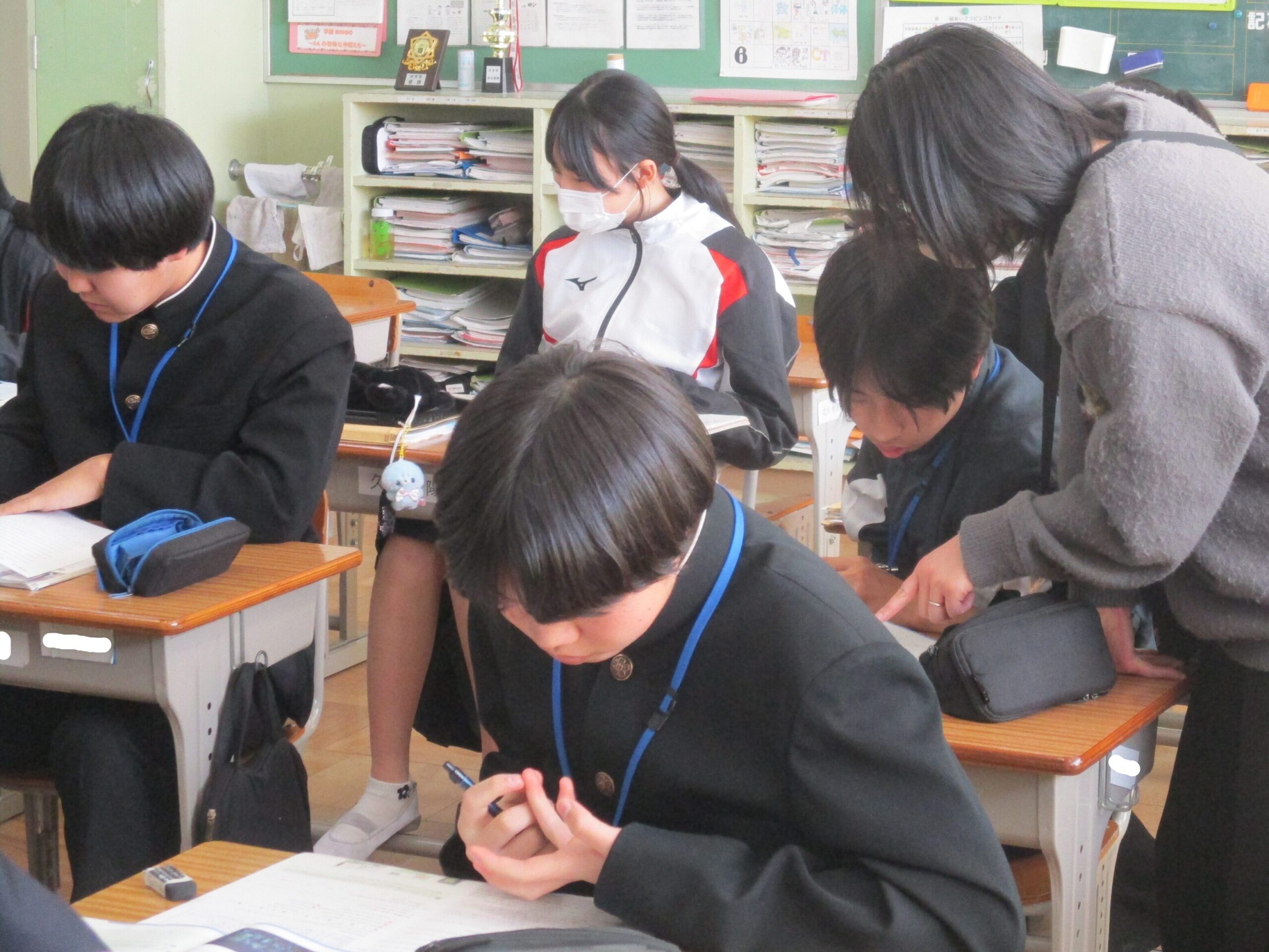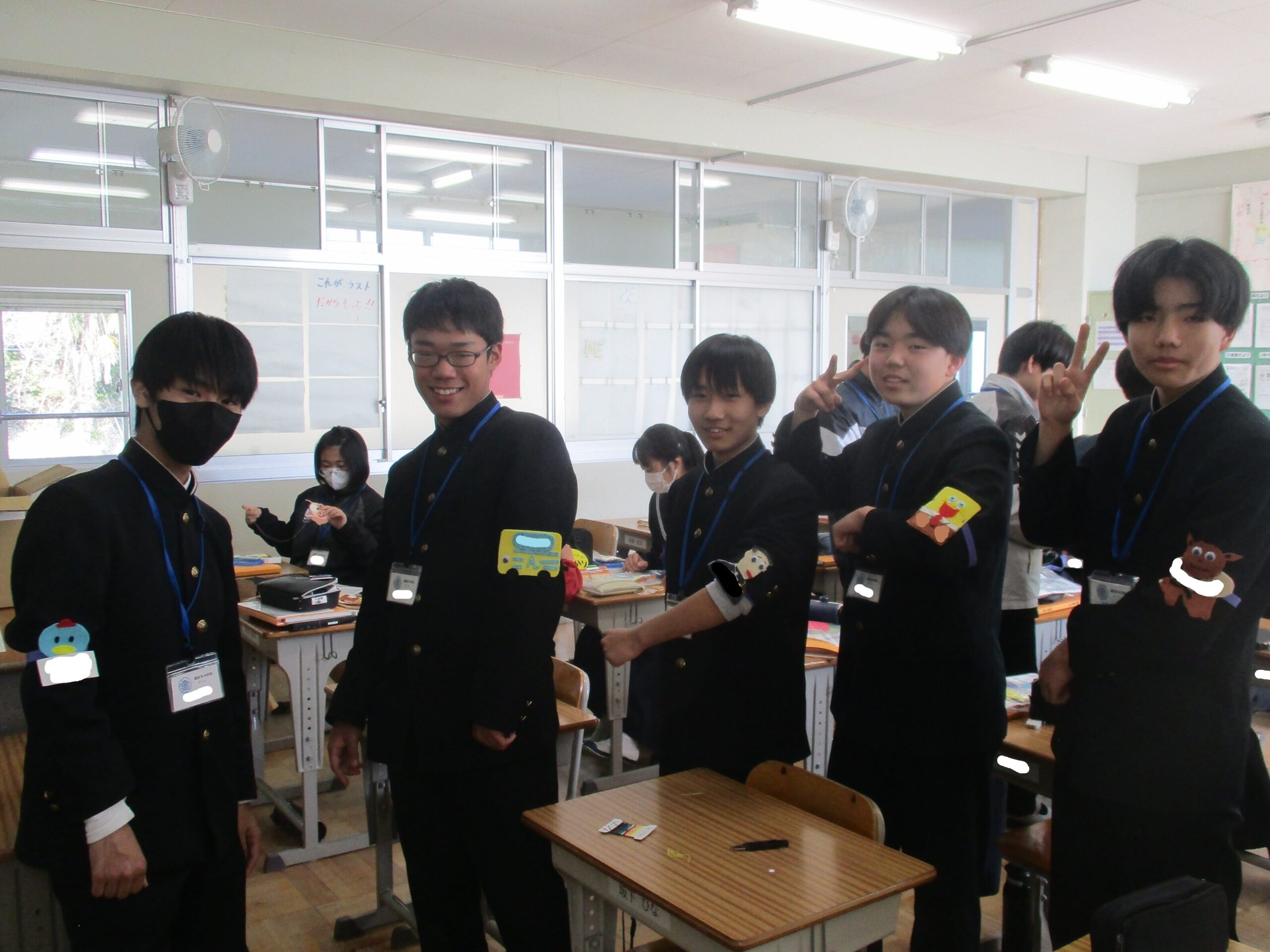 授業の様子です。A組は英語の総合的な問題に取り組んでいました。先生に教えてもらい「そうか!」と納得する声も聞こえてきました。着実に力を付けています。B組は体育でアルティメットのゲームをしていました。それぞれのチームで作戦があり見応えがありました。C組は家庭で保育所訪問に向けたワッペン作りをしていました。園児に喜んでもらえるようなデザインにして制作しました。