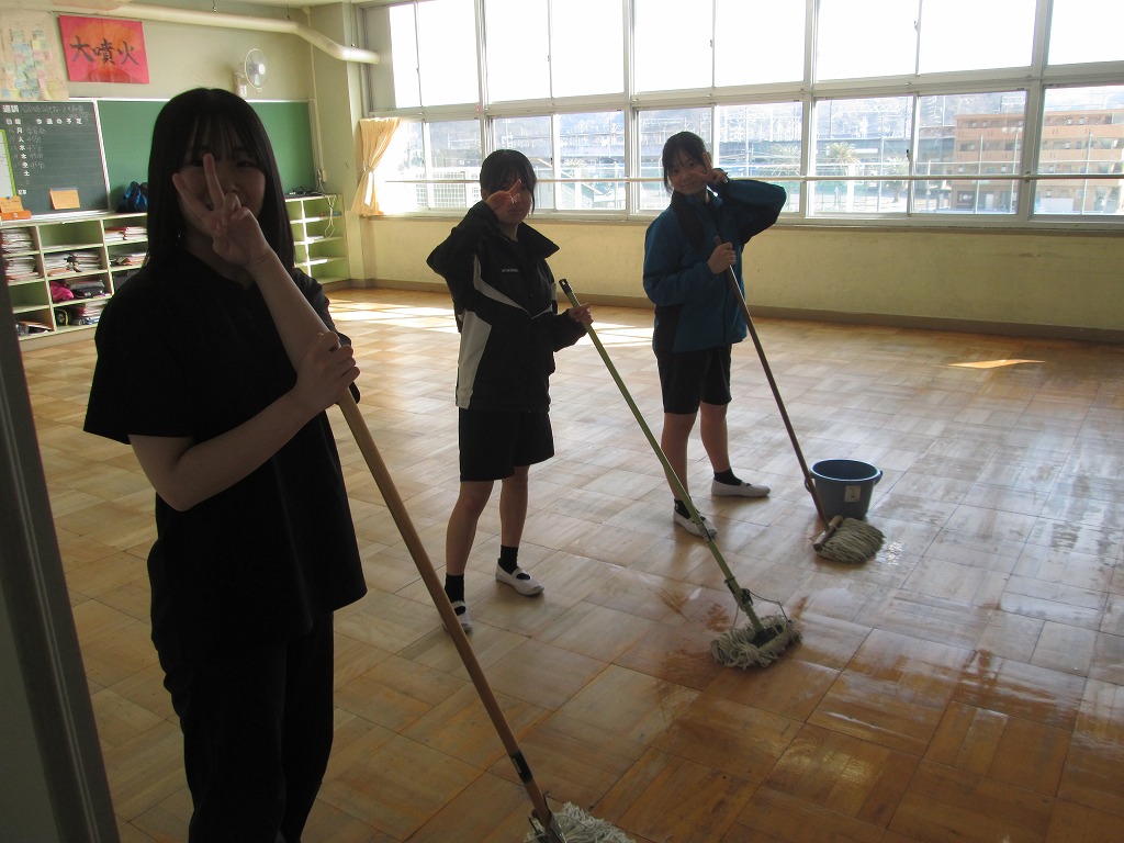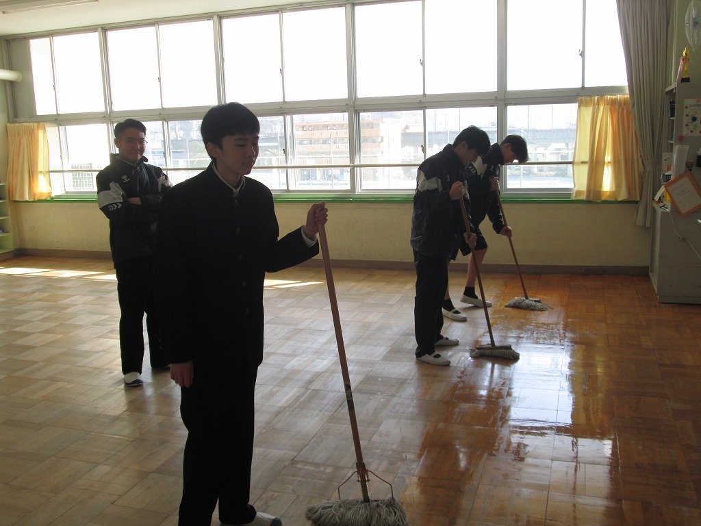 今日は1、2年生が下校した後、3年生は愛校作業に取り組みました。3年間お世話になった中学校に感謝の気持ちをもち、一生懸命作業に取り組む姿はとても気持ちのよいものでした。中学校生活も残り13日です。卒業が近づいてきた今、自分たちにできることは何かをよく考え、一日一日を大切に過ごしてほしいです。