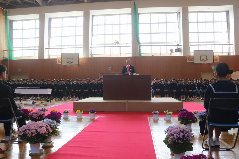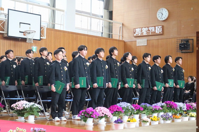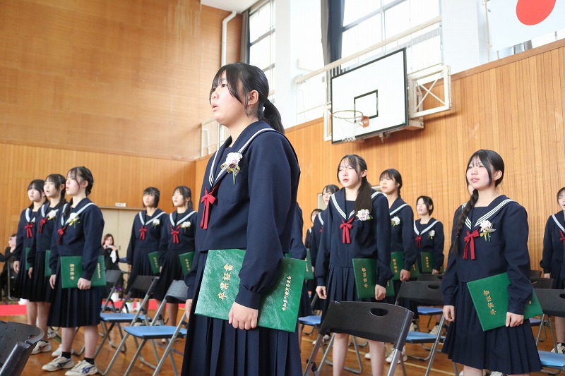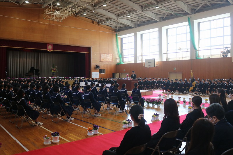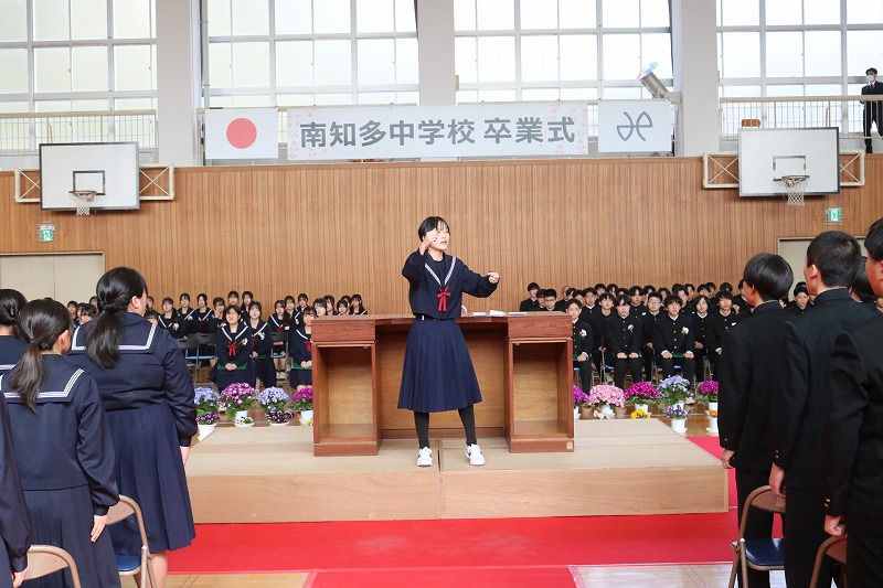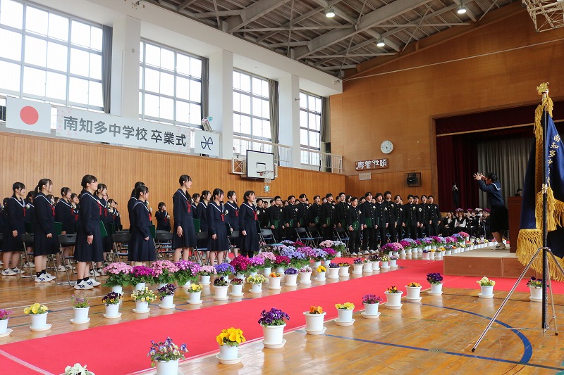 3/6(金)、第3回 南知多町立南知多中学校卒業式を挙行しました。卒業した94名は、南知多中学校が新設された開校初年度の新入生でした。校訓「創造」のもと、3年間の集大成として心温まる素晴らしい式を創り上げて、南知多中から巣立っていきました。
