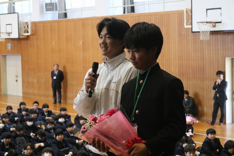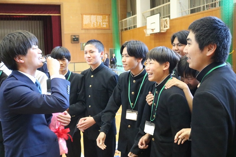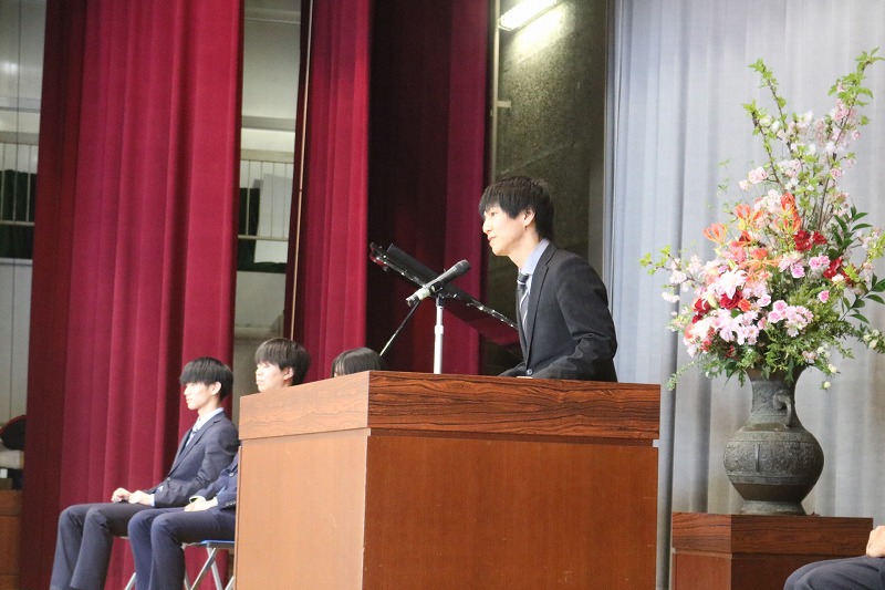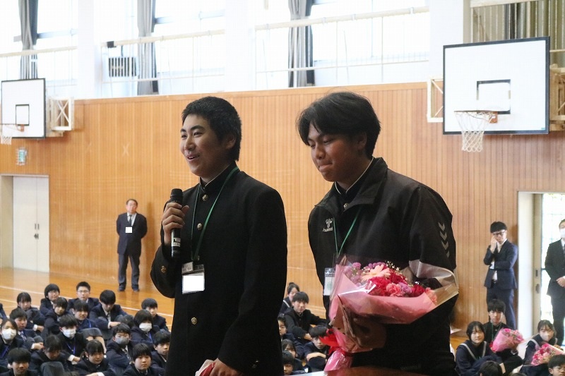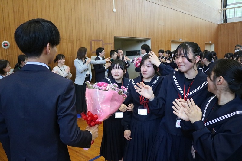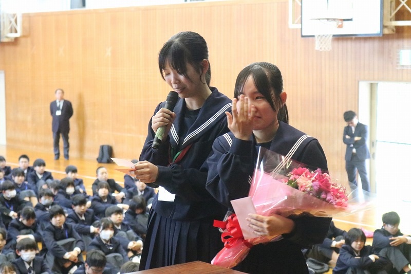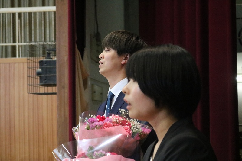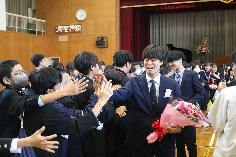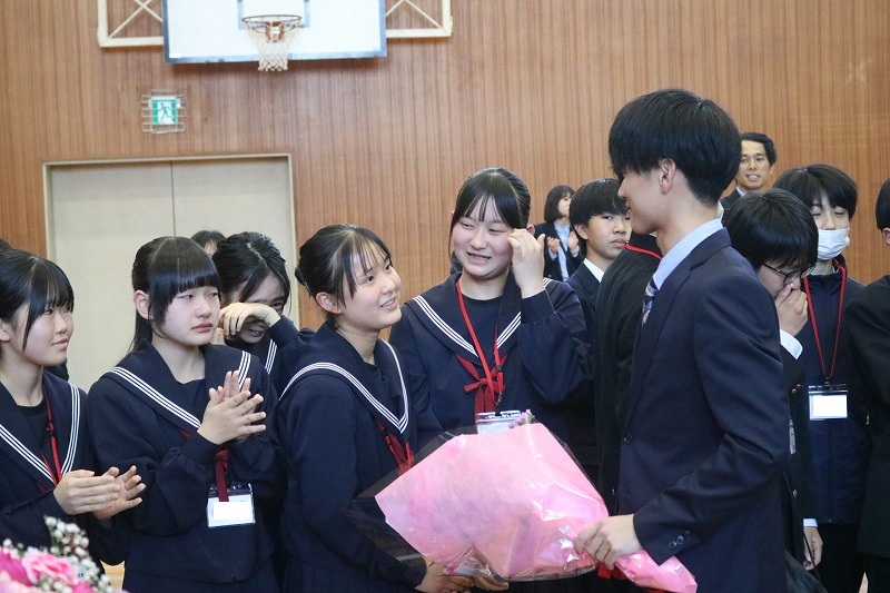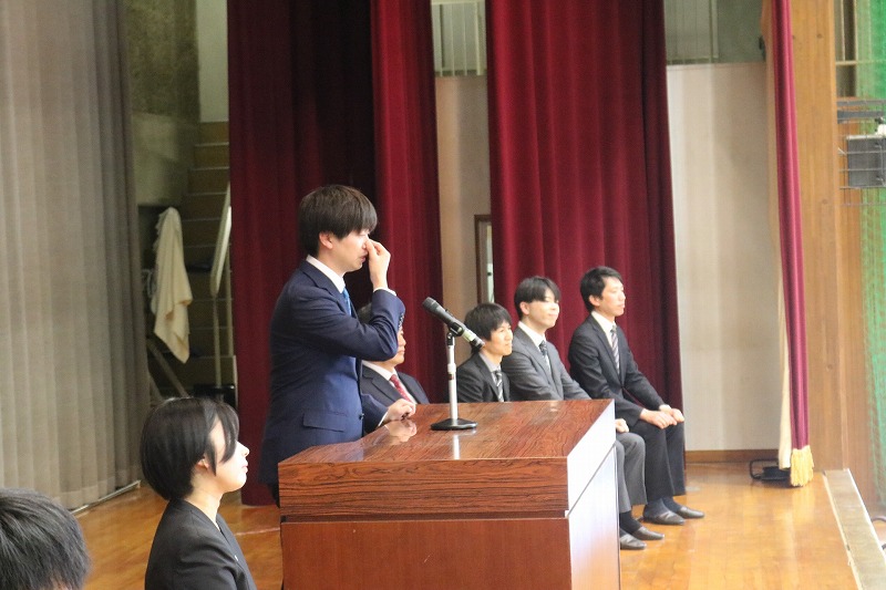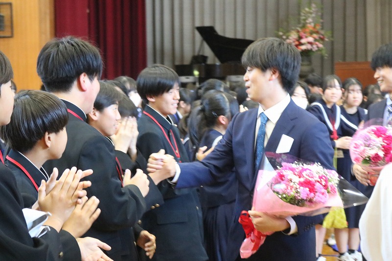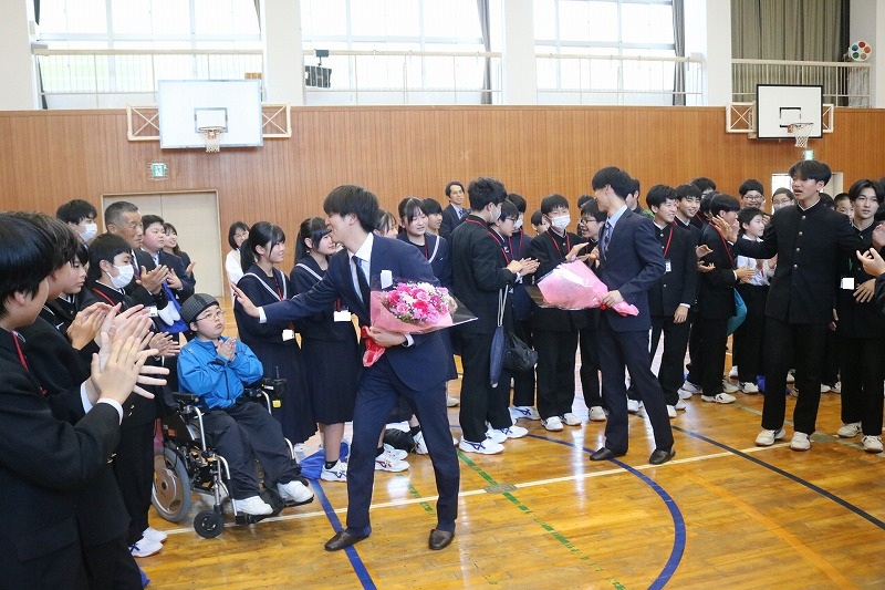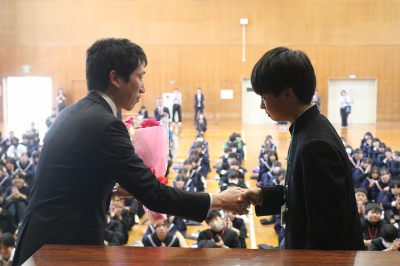 この4月の異動で、南知多中学校を去られた先生方をお招きし、離任式を行いました。去られる先生方との最後の時間を、全校生徒・教職員一同噛みしめながら、あたたかい時間を過ごしました。