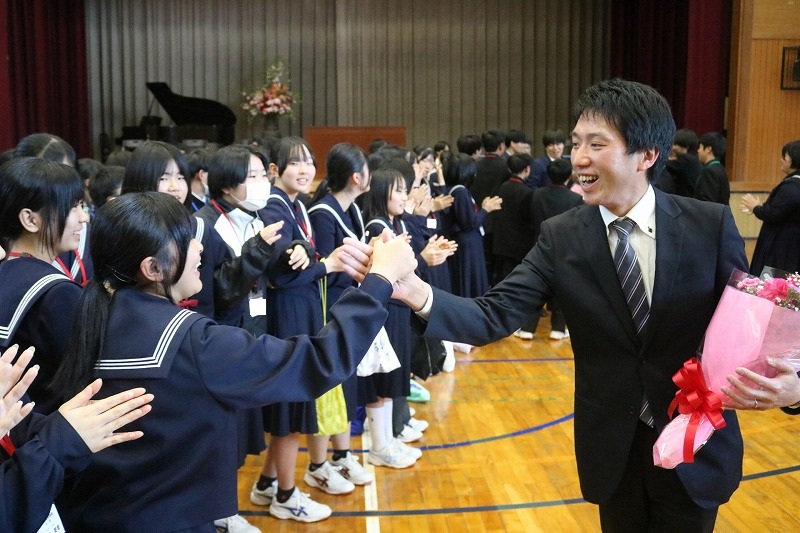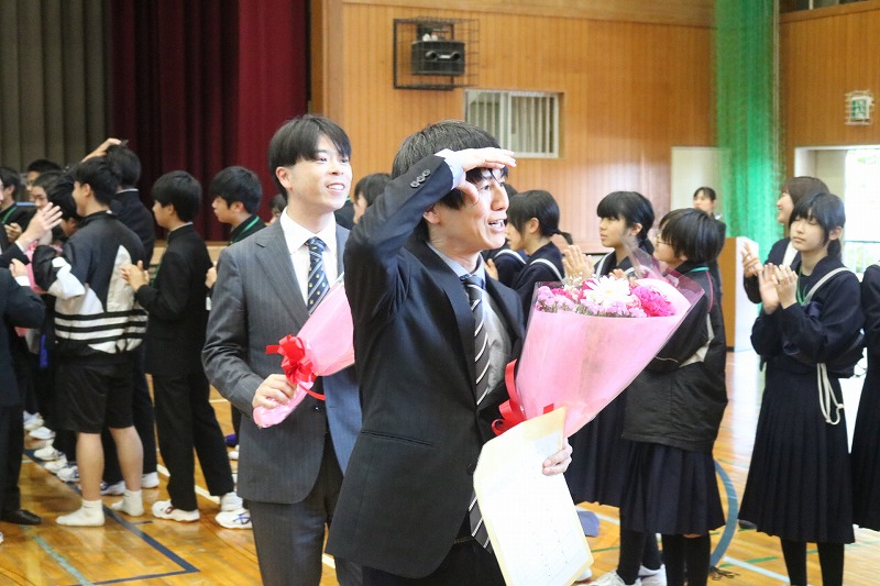 離任された先生方、開校当初から南知多中学校のためにご尽力いただき、本当にありがとうございました。新天地でのご活躍を生徒・教職員一同、南知多より応援しております。