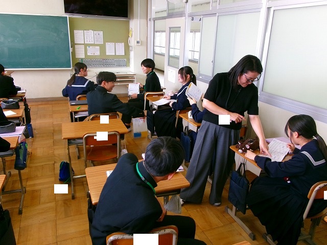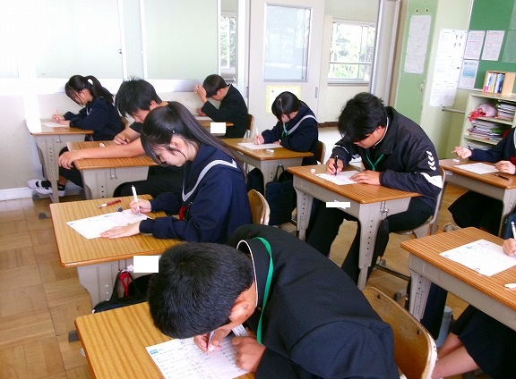 A組は英語の授業でした。習った単語を使ってビンゴをしていました。B組は明日の全国学力・学習状況調査に向けて、操作の確認をしていました。C組は国語の授業でした。漢字の小テスト、できはどうだったでしょうか。