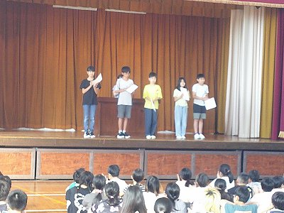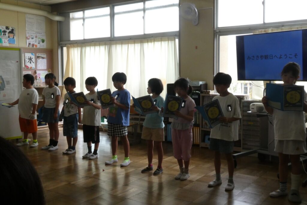 今日は「みさき参観日」でした。各学級でこれまでがんばってきた学習の成果を発表しました。緊張気味の児童もいましたが、成長した姿を保護者のみなさんに見ていただけたのではないでしょうか。その後は、講師の小林先生による「落語」を楽しみました。小林先生のパワーあふれる語りに体育館いっぱいに笑い声が広がりました。