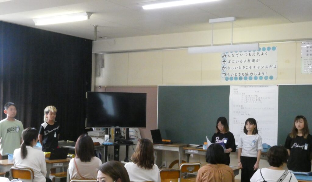 今日は社会福祉協議会の方にご協力をいただき、4年生で福祉実践教室を開き車いすやボッチャに挑戦しました。初めて車いすを体験する子どもたちは「思ったより力がいる」「段差があるとのぼれない」などの感想をもちました。また、どのように声をかけサポートするとよいかなどを学びました。