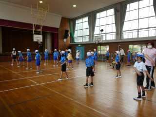 今日は久しぶりの秋晴れ。児童は「今日は外で遊べる?」と尋ねてきましたが、校庭はまだ水たまり。残念ながら今日も外遊びはできませんでした。運動会は近づいてきました。体育館で工夫して練習をしています。