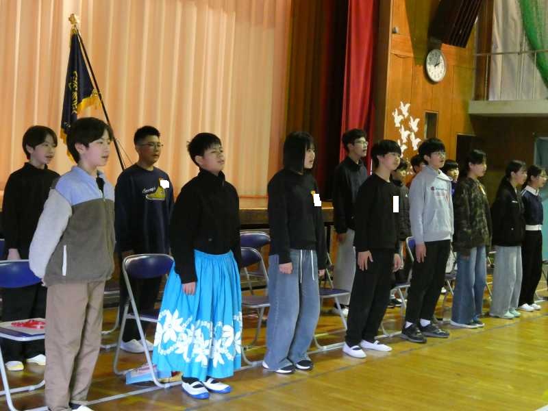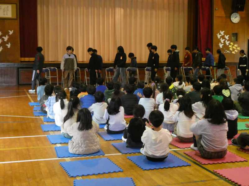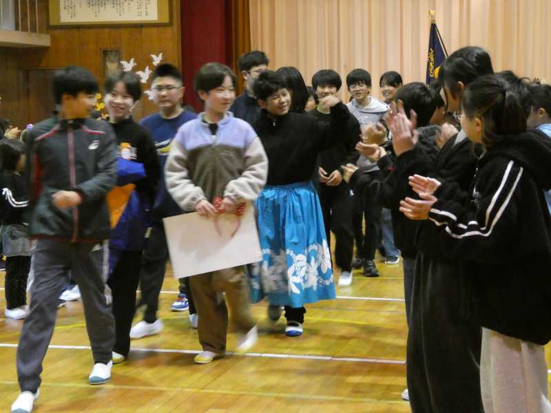 今日は「6年生を送る会」の当日でした。朝からどの学年も少しそわそわしている様子でした。本番は1・2年生からの歌のプレゼントから始まり、3・4年生のかけ声によるメッセージ、5年生からはスライドショーが繰り広げられました。そして、6年生からは御礼をこめて短い劇と歌を披露しました。その後、児童会の引継式を行い、最後の全員での校歌斉唱。退場では保護者の方にも手伝っていただき花道を作って送り出しました。「6年生がいなくなると思うとさみしい」「卒業式はないちゃうかも」といった声も聞こえてきました。一つ一つ終わっていく寂しさと、たくましく成長していく姿にそっと「がんばれ!」と祈りました。