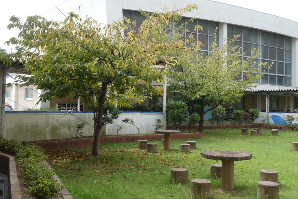 中庭の木々の葉が黄色になり、落ち葉が増えました。ついこの間まで猛暑、酷暑といっていたのが嘘のように季節が変わっていきます。子どもたちも「涼しい!」と笑顔いっぱいで校庭へ飛び出していきます。