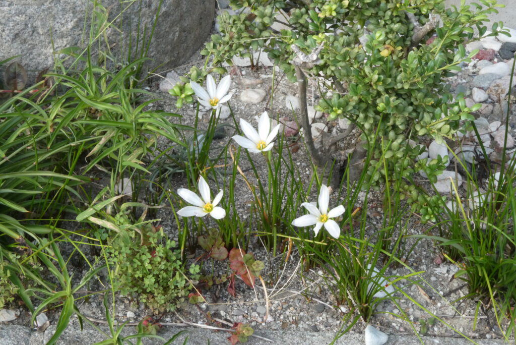 今日は、一日中天気がころころ変わりました。また、蒸し暑さも感じ、少し過ごしにくい1日でした。短い秋なので、秋晴れが恋しいです。秋は校内であまり花を見かけないのですが、職員室の窓の外に小さな白い花を見つけました。名前は分かりませんが、なんだか宝物を見つけたような気分になりました。