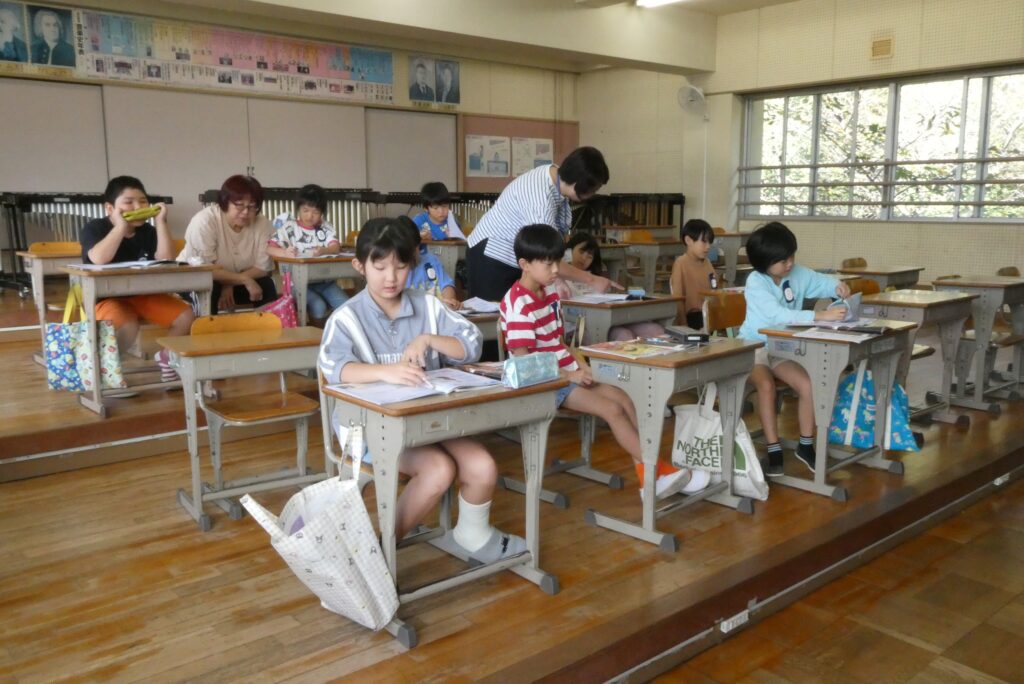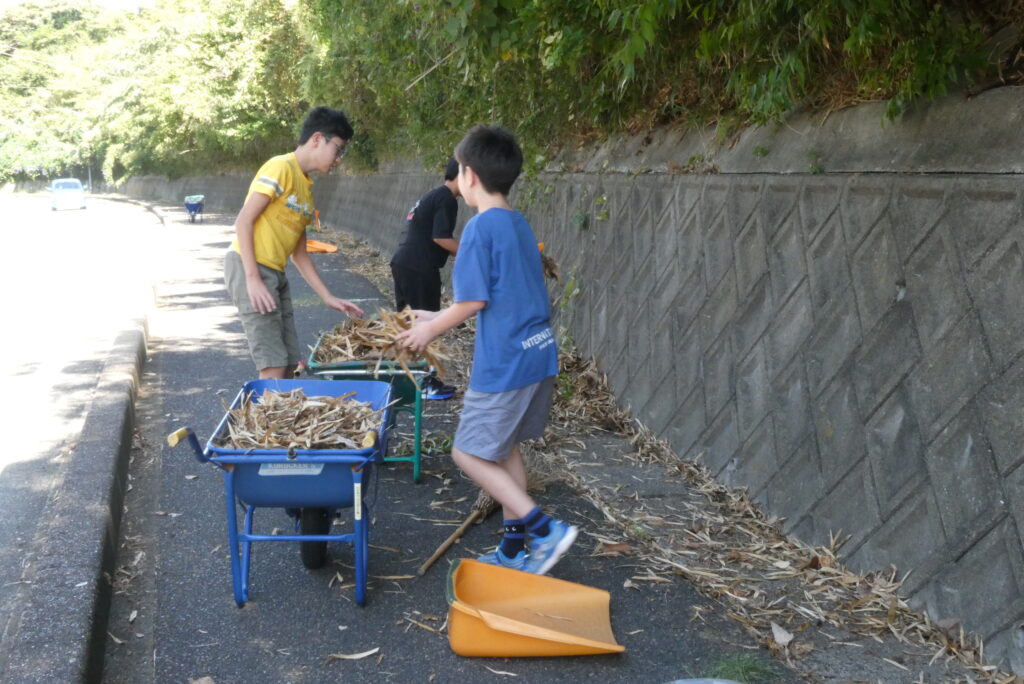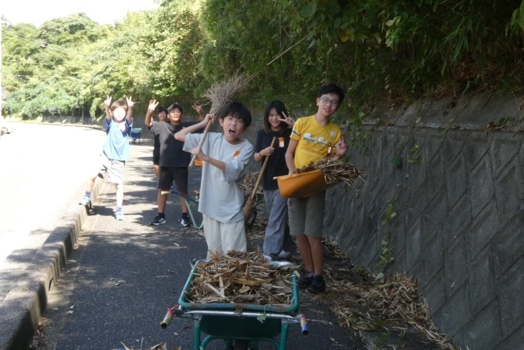 今朝、地域の方から「校門前の坂道に落ち葉がいっぱいで雨が降ると小さな子どもがよくころんでいるよ」と教えていただきました。秋になり、急に落ち葉が増えあっという間に通学路を埋め尽くしていました。学校外の場所ではありますが、確かに雨が降ると滑りやすいだろうと数名の職員で作業を始めたものの、とても追いつきません。地域の方も応援に来てくださりました。さらに、6年生が大放課を返上し応援に来てくれました。「せっかくの放課にごめんね」と声をかけると「全然です。任せてください!」と笑顔で作業をしてくれました。