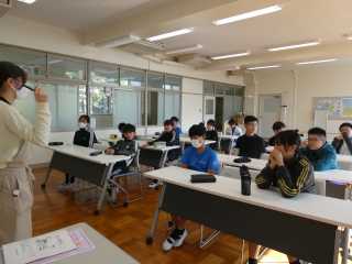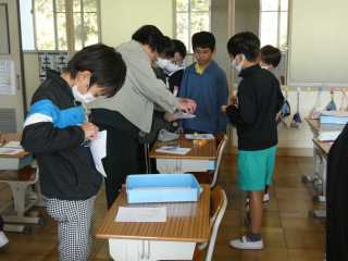 今日は、とても暖かく雲一つない青空が広がりました。でも季節はすっかり秋。学校のシンボルでもある大きなイチョウの木の葉がほんのり黄色に色づいてきました。インフルエンザ拡大防止のために学年閉鎖をしていた一学年が復帰しました。また、3年生は知多南部消防組合本部、6年生は師崎層群へ校外学習に出掛けました。来週は全学年そろうかな?