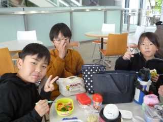 今日は、少し肌寒い中でしたが4年生が「名古屋市科学館」へ校外学習に出掛けました。いろいろな体験や発見があったようですが、やはり1番楽しそうなのはお弁当の時間かな?