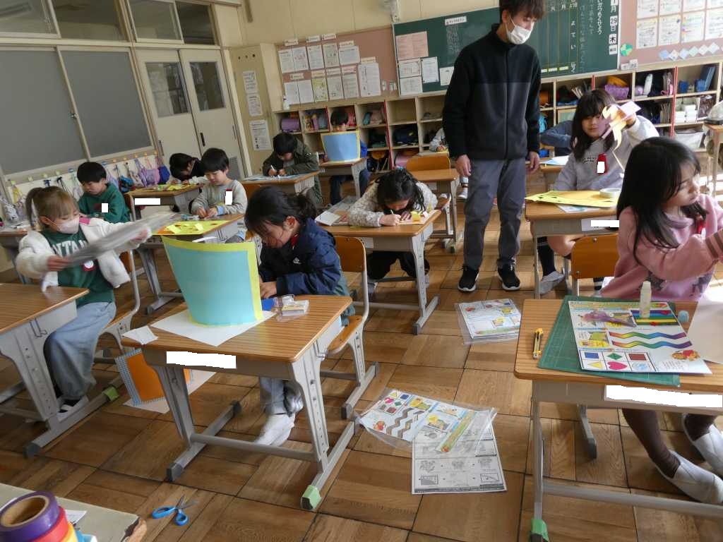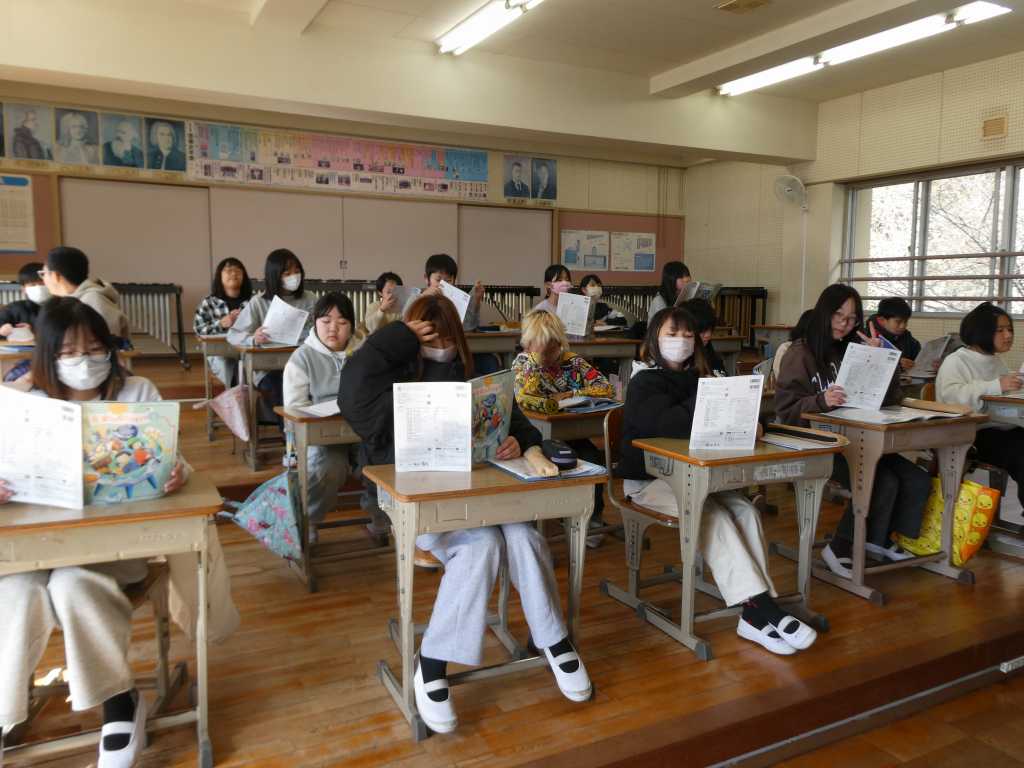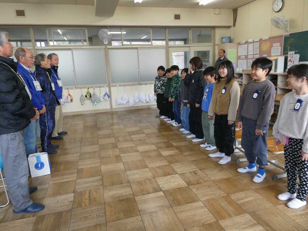 左義長祭りのぼり旗作りの講師の方に御礼の手紙と校歌のプレゼントをしました。(3年生)