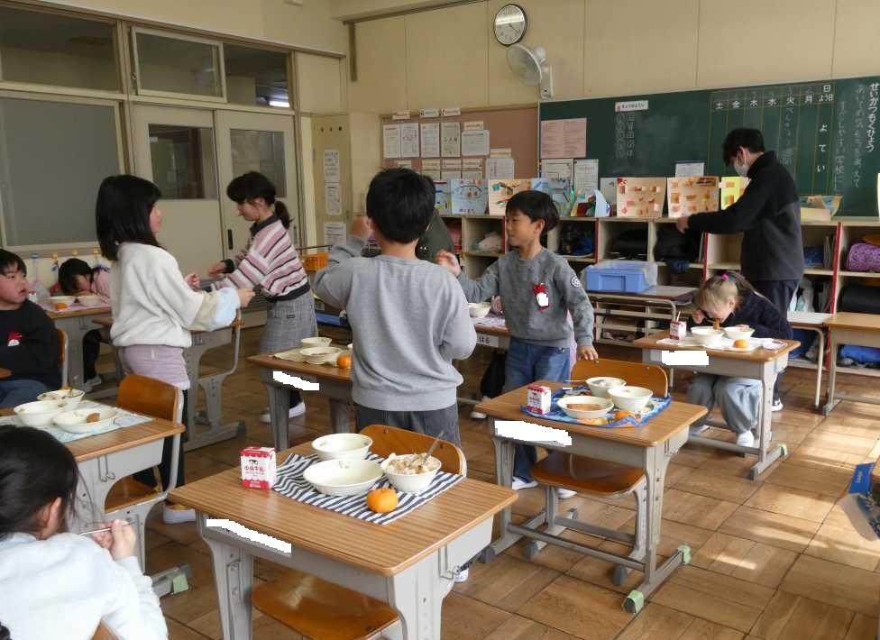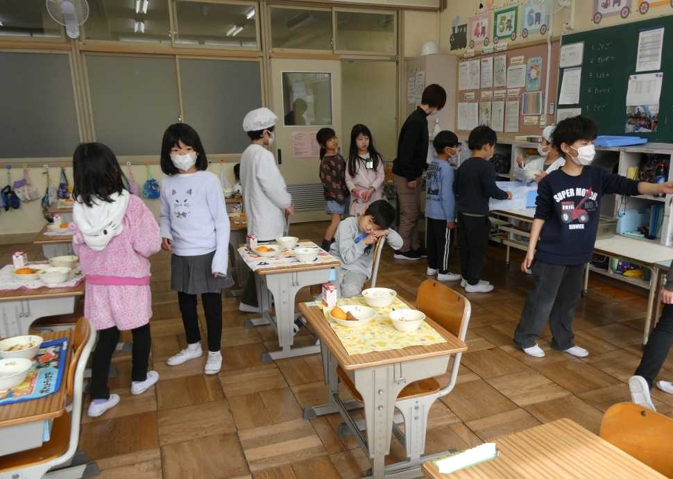「今日の給食何かな?」4時間目になると低学年はそわそわ。給食の時間には「おかわりじゃんけん」で盛り上がります。今日も元気にしっかり学習し、身体を動かし、食欲満点の子どもがいっぱいでした。