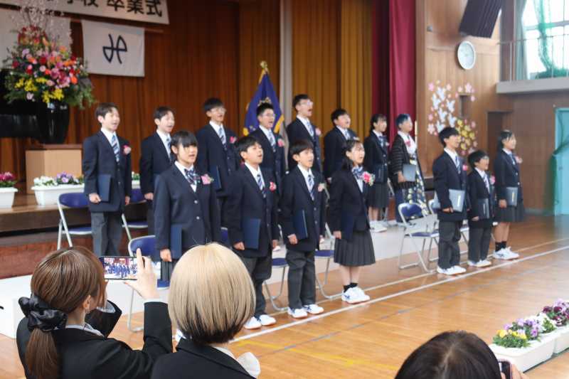 今日は、卒業式をでした。6年生のみなさん、保護者の皆様 誠におめでとうございます。昨日夕方より降り続いた雨も、6年生の門出を祝うかのように式直前にはあがり、暖かい小春日和となりました。在校生、卒業生の歌声はすばらしく、心を打つものでした。在校生、地域の方、職員の見守る中、明るい笑顔で旅立ちました。
