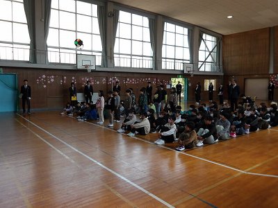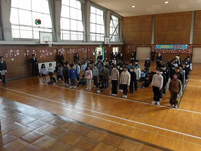 今日は、修了式。とても天気もよく、桜の花は昨日たくさん咲いています。6年生のいない今年度初めての体育館の集合でした。今年1番のきれいな整列で式を待つ児童は頼もしく見えました。式での歌声も体育館中に響き、進級する覚悟を感じた式でした。式の後には、各学年の代表が1年間を振り返って話をしてくれました。どの児童も、とても前向きに一生懸命に学校生活に取り組んだことが伝わってきました。4月になれば新1年生が入学します。温かく迎えたいと思います。