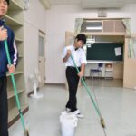 なかなか天気が晴れやかになりませんね。 掃除の時間、普段手を出せないところを念入りに窓拭きしてくれていました。