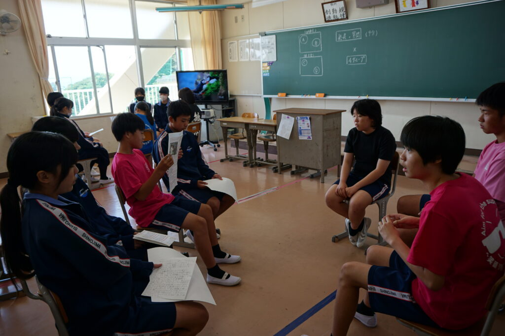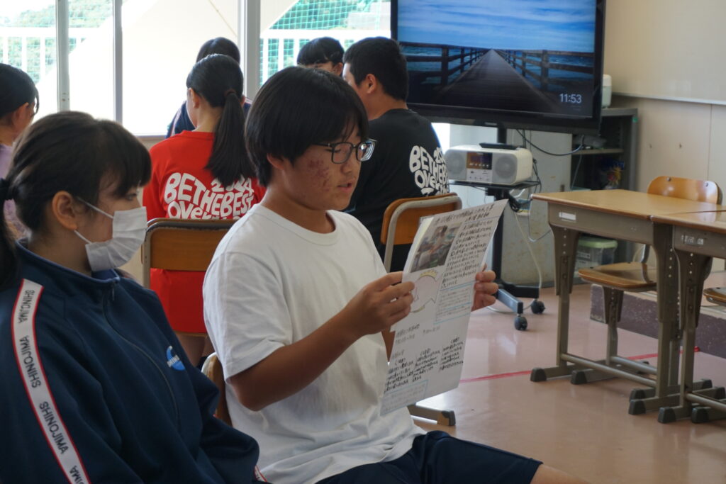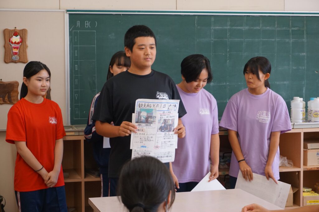 夏休みに職場体験をした2年生が、3年生に向けて発表会を開きました。