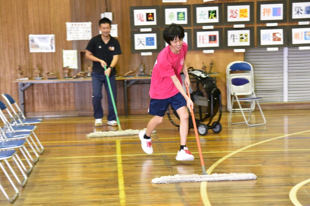 体育館の中でも、掃除やリハーサルが進んでいます。