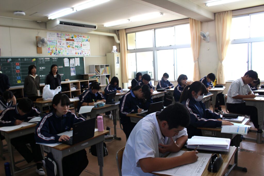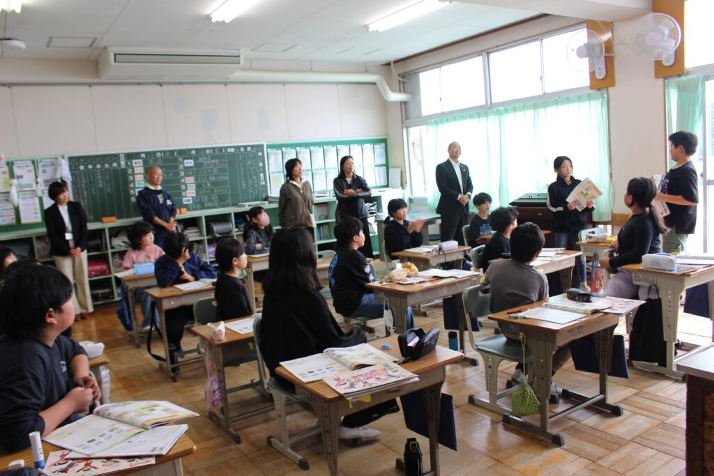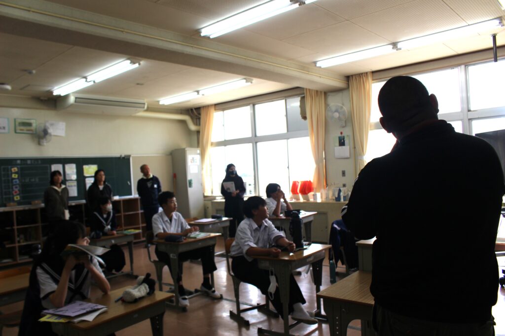 1023 民生委員さんが観に来てくれました 2025/10/23 学校 地域の民生委員さんが、日頃の小中学生の授業の様子を観に来てくれました。 小中学校のみんなが、とても活発で楽しそうだとおっしゃられていました。
