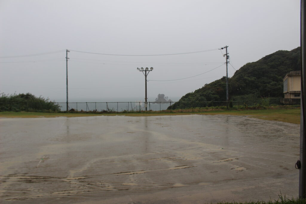 3次避難は、高台へ移動。本日は雨天のため、校舎の4階に避難しました。続いて小学生も中学校4階に避難しました。