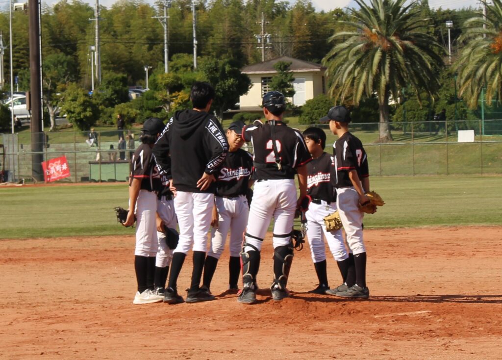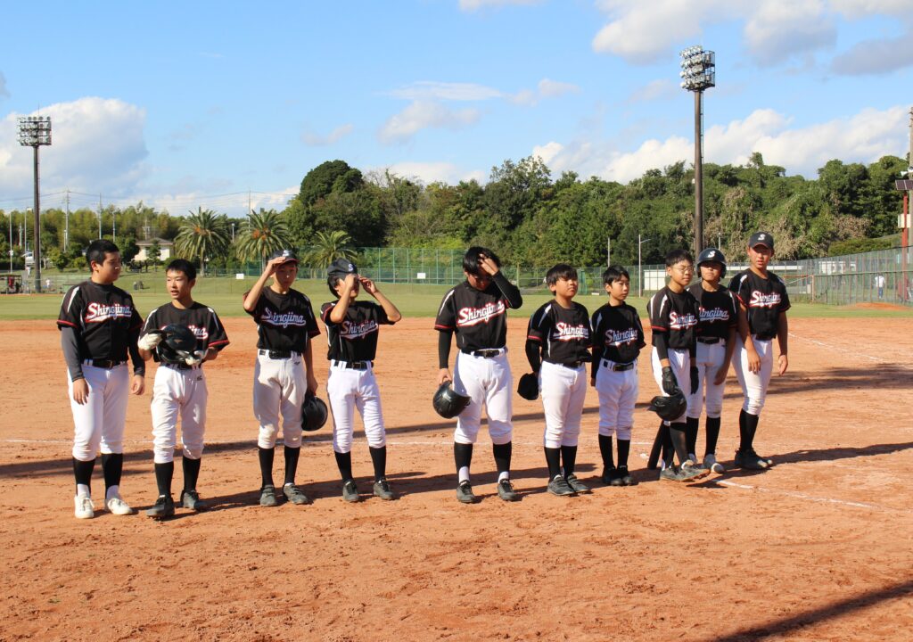 1101 武豊町民大会(軟式野球) 2025/11/4 学校 晴天の中、1日、3日と武豊町運動公園で軟式野球の試合が行われました。 新チームで試合を行いました。出場人数は10名でギリギリでしたが、健闘していました。南知多中学校相手に4回終了までで2-4。その後の試合も頑張っていました。