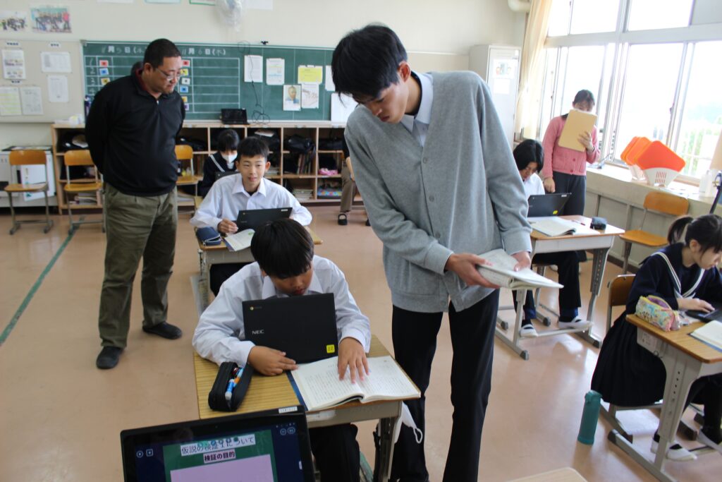 1時間目に1年国語科の研究授業があり、他学年の先生方も参観しました。