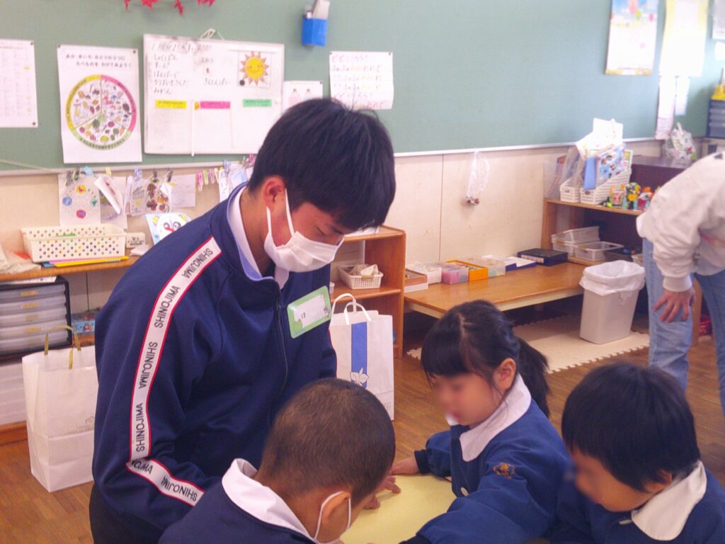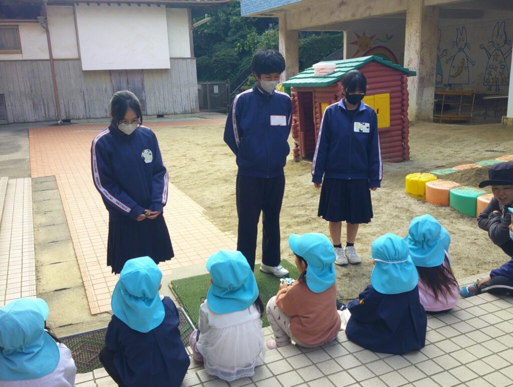 1112 3年生保育園訪問 2025/11/12 3年 体調不良等でお休みしてしまった生徒も園児もいましたが、無事交流が行われました。 園児と元気に楽しく交流をしていました。 さすが中学生、園児たちに頼られています。