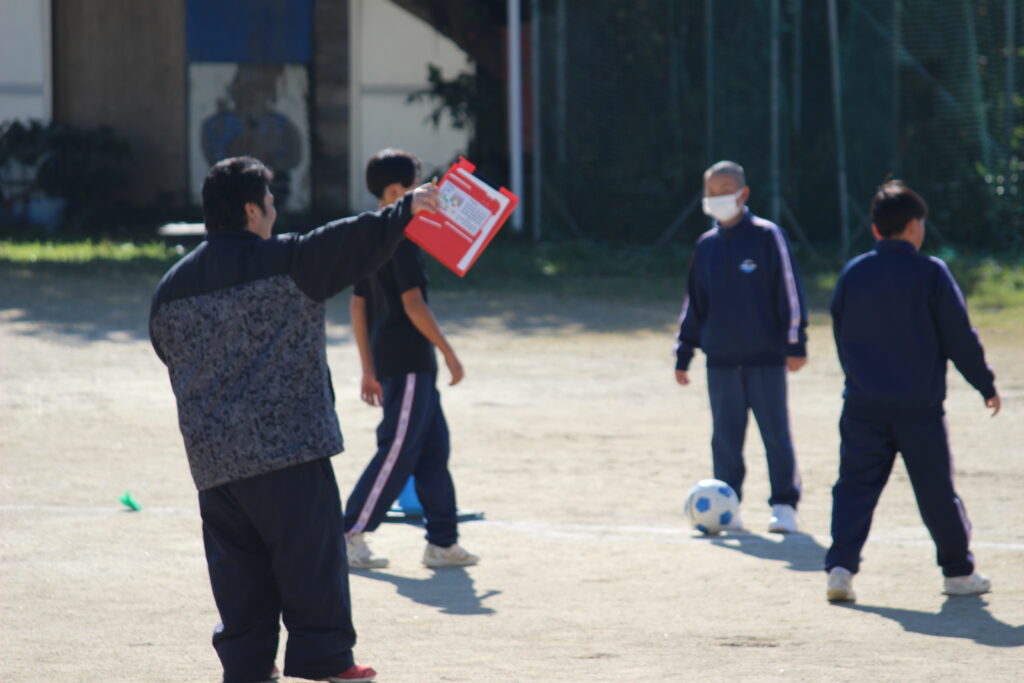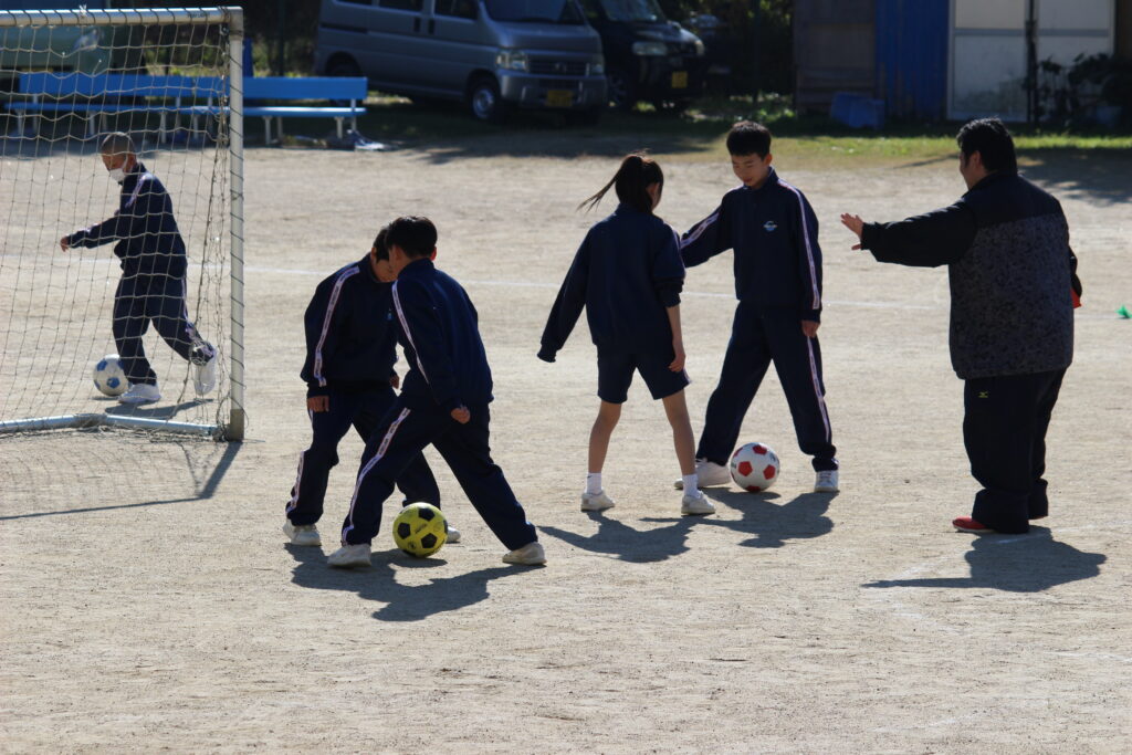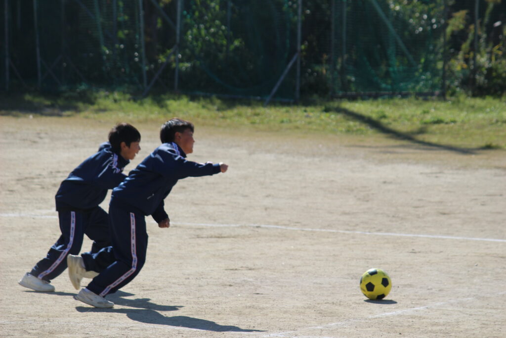 3時間目の1年生は、運動場で、体育のサッカーの授業でした。