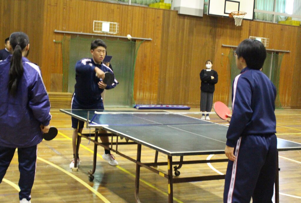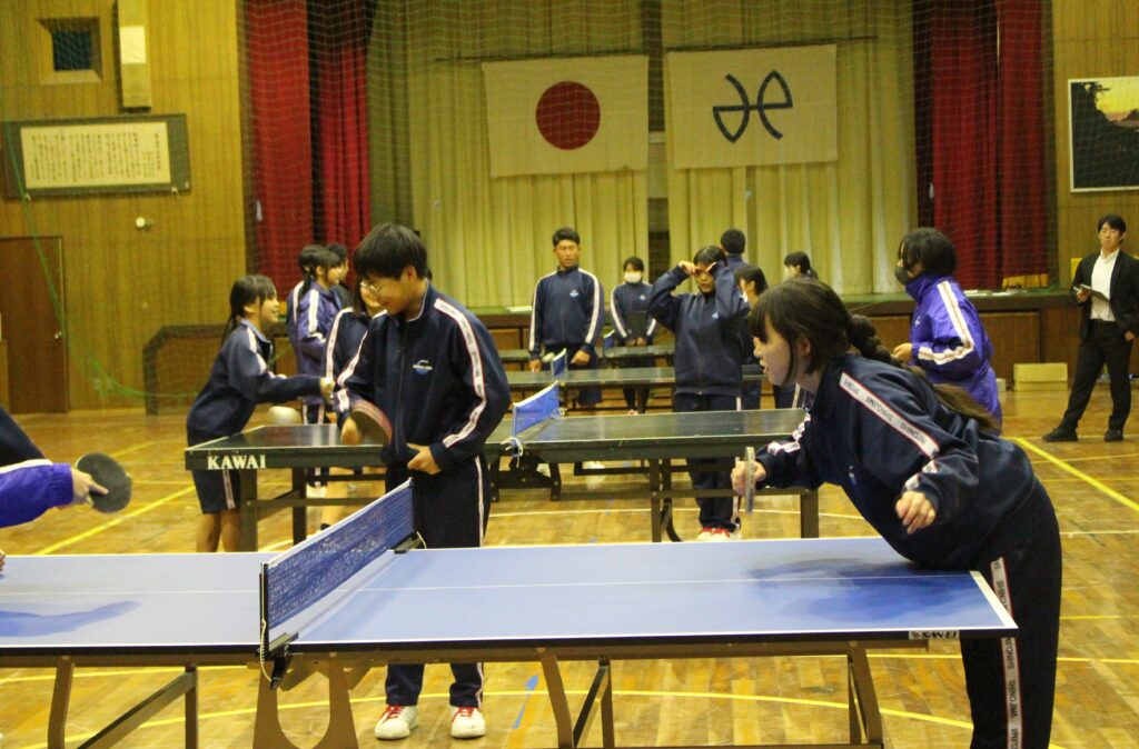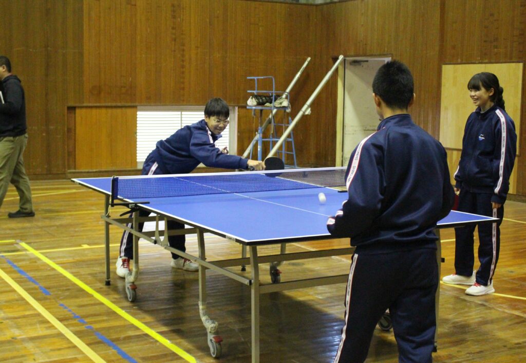 1時間目に2年生の体育科「卓球」の研究授業が行われました。