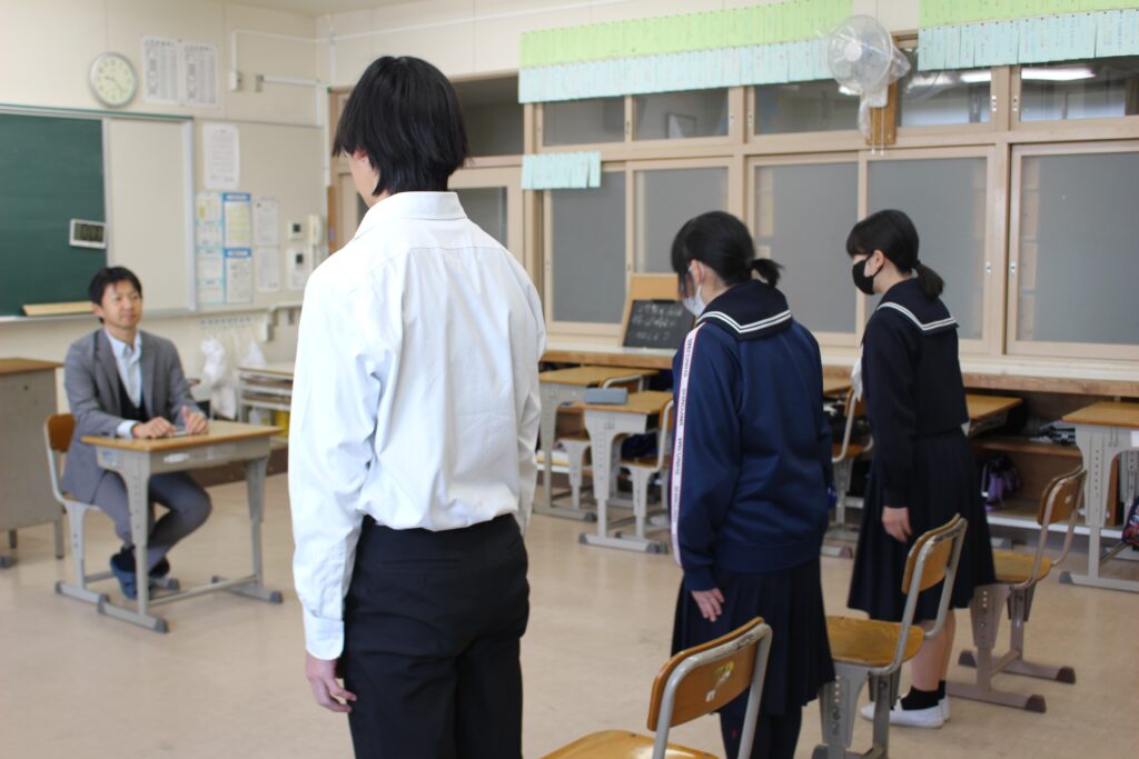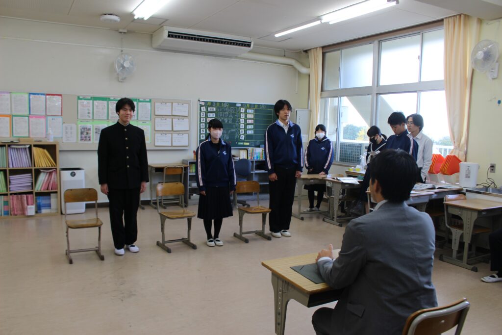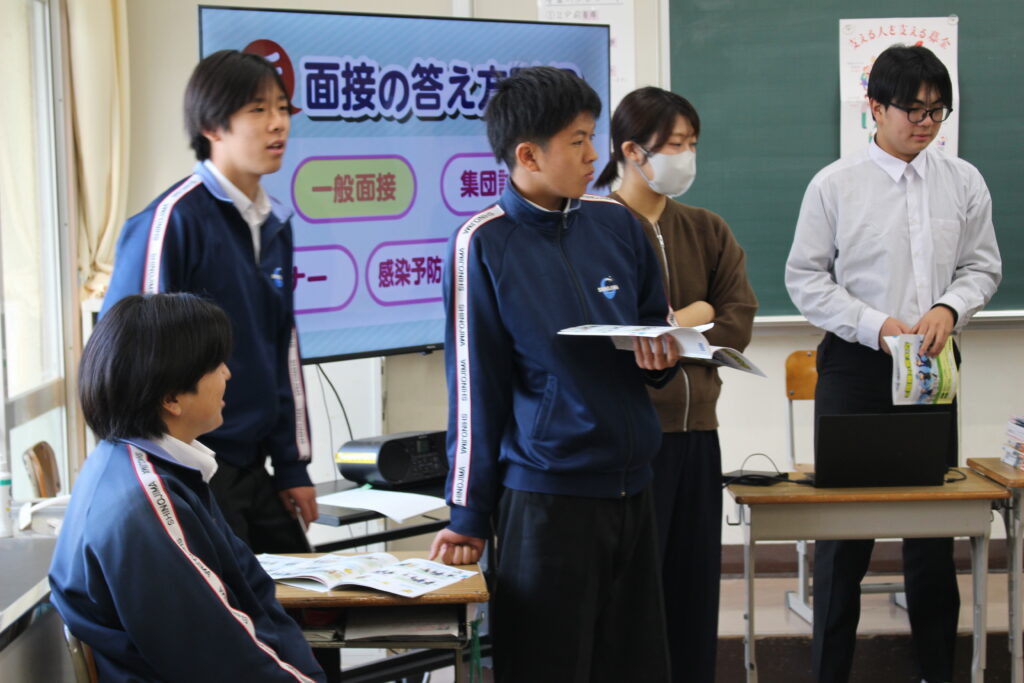 1205 3年生面接練習 2025/12/5 3年 3年生は、キャリア教育の一環で面接練習を行いました。これからの受験で必要となる生徒もいれば、社会人になったときに必要な生徒もいます。全員で入室から退室までしっかりと学びました。 はじめてのことばかりでかなり緊張していました。時には必要な経験ですね。