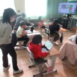 アプリを活用してプログラミング学習を行いました。課題は「レーシングカーを動かしてアイテムを集める」というものです。鍵となる文を順番に組み立...