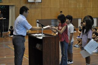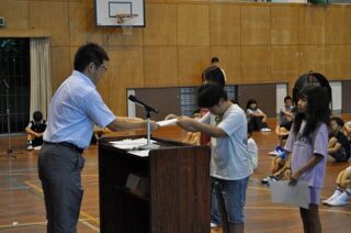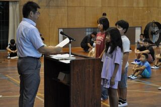 9/29(月) 朝会・後期児童会役員任命 2025/10/1 学校活動の様子 後期児童会役員の4名に任命状を渡しました。よりよい学校にしていくために、一生懸命にがんばって、それぞれの公約を果たしてくれることと思います。