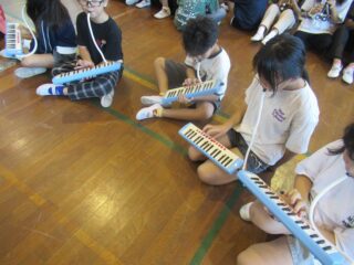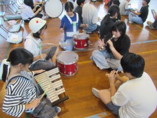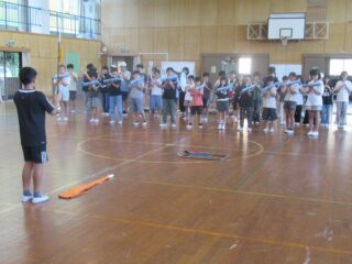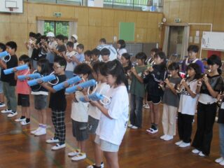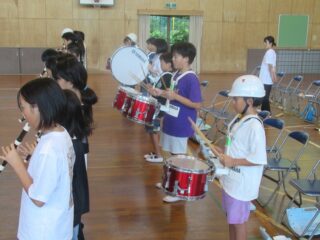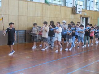 10/9(木) 御幣鯛奉納祭に向けたマーチング全体練習 2025/10/9 学校活動の様子 体育館で最終調整に入っているマーチングの練習の様子です。演奏も動きもだんだんよくなってきました。一般的なマーチングとは違い、奉納行列の歩行速度に合わせるので、曲のリズムと足運びのリズムが異なります。「器用に動くなあ」と感心してしまいます。