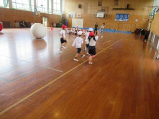 来週、開催される運動会の徒競走と学年種目「大玉ごろごろ」の練習をしました。