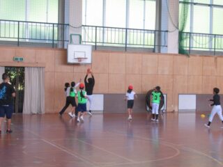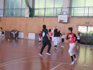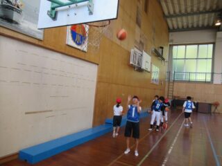 10/23 5・6年 体育「ボール運動(ゴール型)」 2025/10/23 学校活動の様子 今日はバスケットボールのミニゲームを行っていました。これまでの練習の成果でしょうか。ドリブルからのパス、そしてシュートとオフェンスの形ができていました。 ディフェンスは苦労していたようですが、バスケットボールは点取りゲームですから、オフェンス重視で得点の喜びを味わってくれればよしとしましょう。