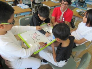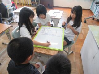 2つのグループに分かれて考えを出し合っていました。合わせる考え方については、みんな納得顔で意見を言ったり、聞いたりしていましたが、取り除く考え方については・・・・・・。