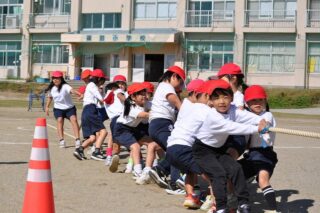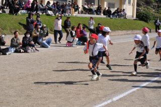 開会式の直後から風が強まり、寒気の影響なのか、とても肌寒くなりました。しかし、運動場は子どもたちの競技と保護者や地域の方の応援で熱気に包まれました。