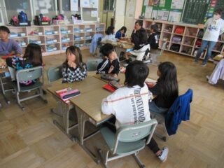 10/31 2年生 国語「みんなで話をつなげよう」 2025/10/31 学校活動の様子 友達からの相談にのるという場面設定で、話がつながるように対話をしていく活動をしました。 話をつなげるために、質問や確認をしたり、共感したことを伝えたり、自分の考えを伝えたりすることを学び、グループで取り組みました。