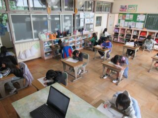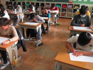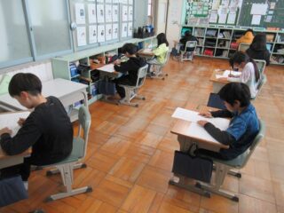 11/18 漢字・計算テスト大会 2025/11/18 学校活動の様子 子どもたちなりに気合いを入れてきたようで、登校時から「今日はがんばる」と意気盛んな言葉を何人からも聞きました。放課中も自主勉強する姿が・・・・・・。 一方、テスト直前のトイレには行列も・・・・・・。「何でこんなに混んでるの?」と思わず聞いたら、「テスト前だから」との返事でした。緊張していたのかな? いつもは和やかな様子の教室も、テストの時間は張り詰めた空気が流れていました。 1年生 2年生 3年生 4年生 5年生 6年生