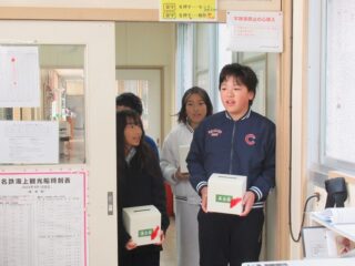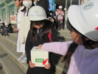 11/19 赤い羽根共同募金 2025/11/19 学校活動の様子 今日から児童会活動で赤い羽根共同募金を行っています。登校時に昇降口で児童会役員が募金を募っています。初日は、呼びかけも控えめで、まだ少し照れがあったのかな。