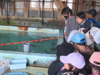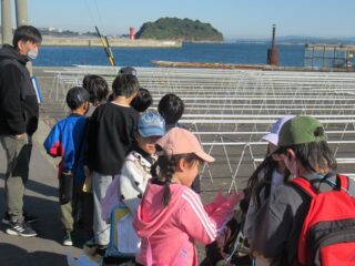 2年生が生活科の学習の一環で島内の校外学習に出かけました。テーマは「町の人の『すてき』を見つける」です。