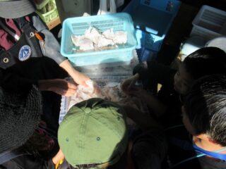 事前の下調べを基に質問内容を考え、一人一人がインタビューをしました。かなりの距離を歩きましたが、途中で声をかけてくださる島の方もたくさんいらっしゃって、子どもたちの表情は充実感に溢れていました。