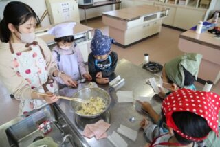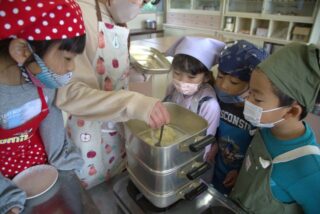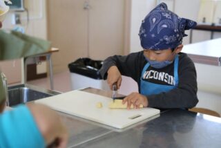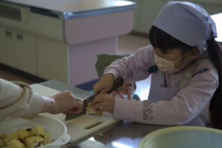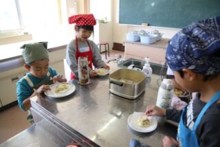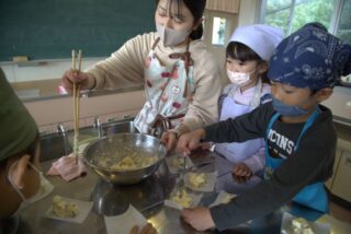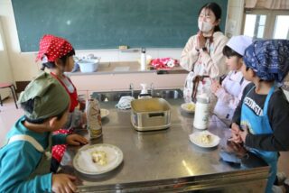 12/5 1年生 おいもパーティー 2025/12/5 学校活動の様子 10月に収穫して貯蔵しておいたさつまいもが熟成したので、おいもパーティーを開くことにしました。メニューは鬼まんじゅうです。苦労しながらも一人一人が包丁でいもを切って、生地に混ぜて、成形して、蒸し器にかけました。自分たちで作った鬼まんじゅうの味は、格別だったでしょう。