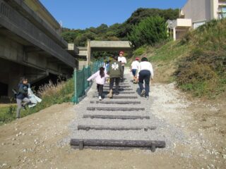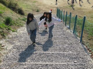 きれいでおしゃれな階段が完成し、今日から使えるようになりました。安全のために歩いて昇降することにしています。子どもたちは、早速、大放課に階段を使って運動場へ行き、鬼ごっこなどをして遊びました。