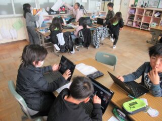 12/15 2年生 生活科「たんけんたい しゅっぱつ(しらべたことを つたえよう)」 2025/12/15 学校活動の様子 先日の校外学習で島内の各事業所の皆様にインタビューをさせていただいたことについてまとめ、発表する準備を進めました。グループのみんなで、聞き手にとって分かりやすい文や見やすい資料にするにはどうするとよいか、話し合っていました。