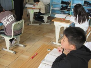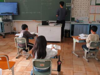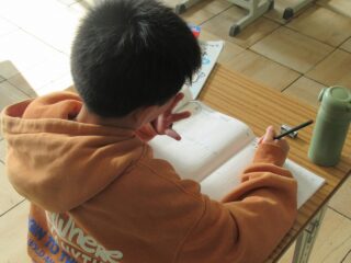 解が割り切れない計算を行い、「10分の1の位までのがい数で答えをもとめましょう」「上から2けたのがい数で答えをもとめましょう」という問題に取り組みました。求める答えの一つ下の位を四捨五入することがポイントですが、慣れるまで手こずっているようでした。