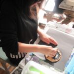 彫り方や色の重ね方を工夫しながら、一版多色木版の作品に取り組んでいました。今日は刷る段階で、次々に作品が仕上がっていきます。篠島らしい作品...